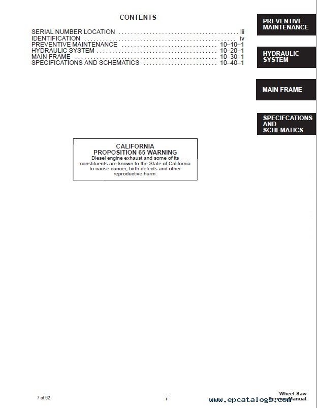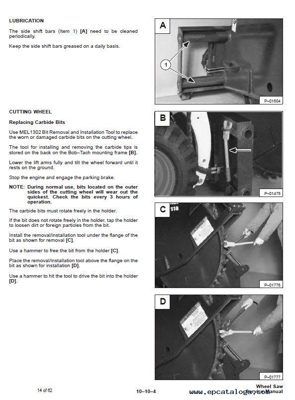 Service guide is a system of care in maintenance and repair of Bobcat Wheel Saw, which allows you to identify and solve problems and inaccuracies.
