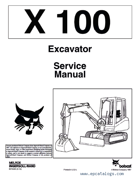 [1988/2012]The service manual is an indispensable tool for yourself and make timely repairs and maintenance of Bobcat Excavator X100. This service manual contains special instructions, maintenance information, detailed pictures and diagrams, special instructions on installation, technical specifications for Bobcat excavators.