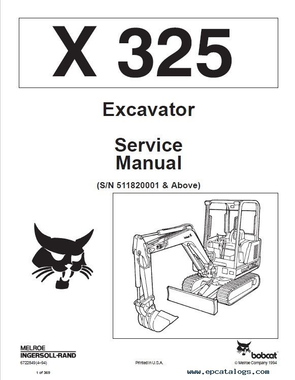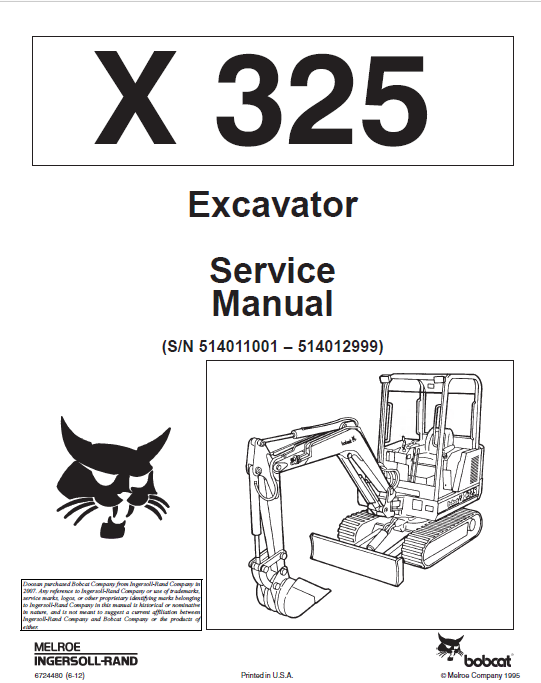 [06/2012]This service manual includes repair and maintenance information for Bobcat Excavator X 325.