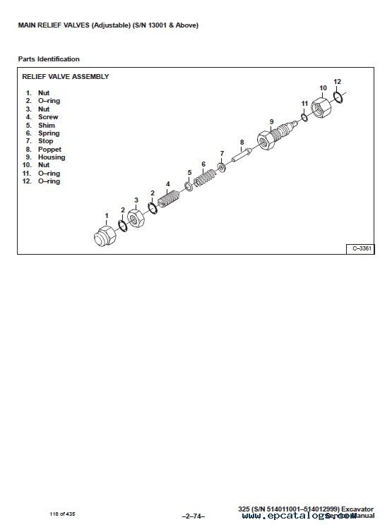 - PORT RELIEF VALVES AND MAIN RELIEF VALVES (S/N 13001 & Above)