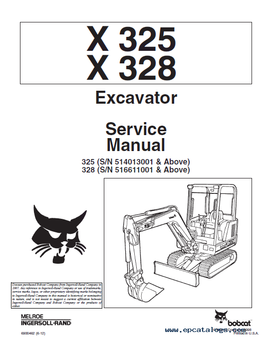 Note: This product includes 2 PDF files for Bobcat X325, X328 compact excavator in 2006 and 2012 years.