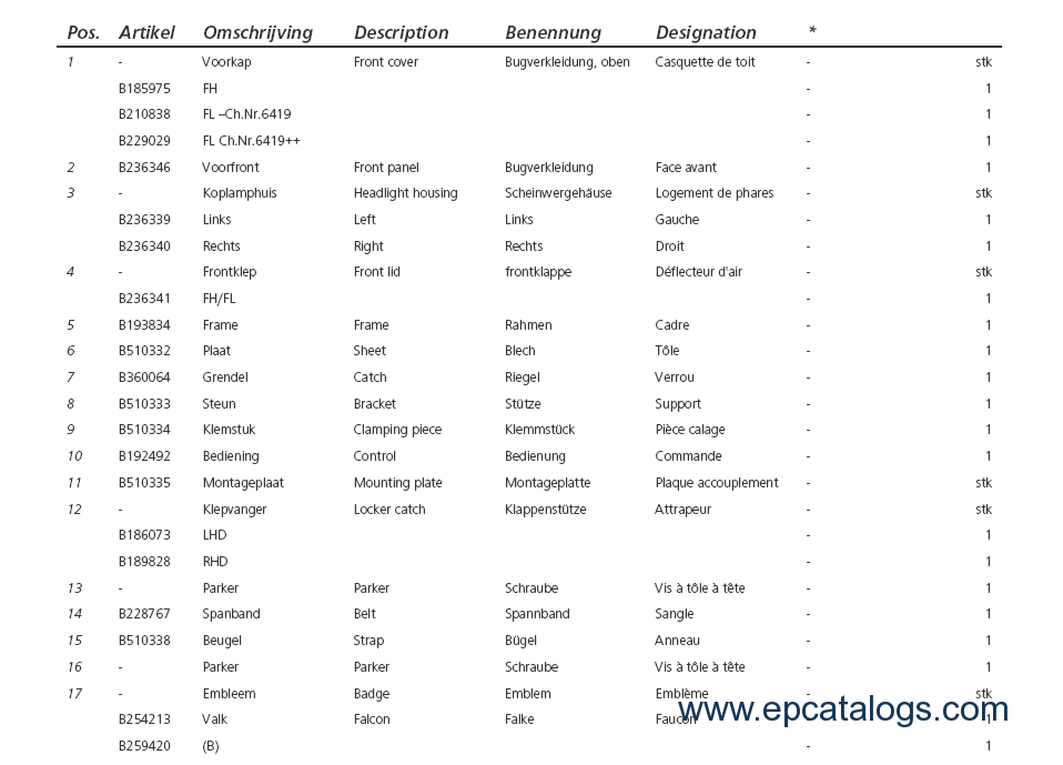 The parts catalogue gives an overview of all available parts for BOVA Futura's from chassisnumber 5003803 onwards.