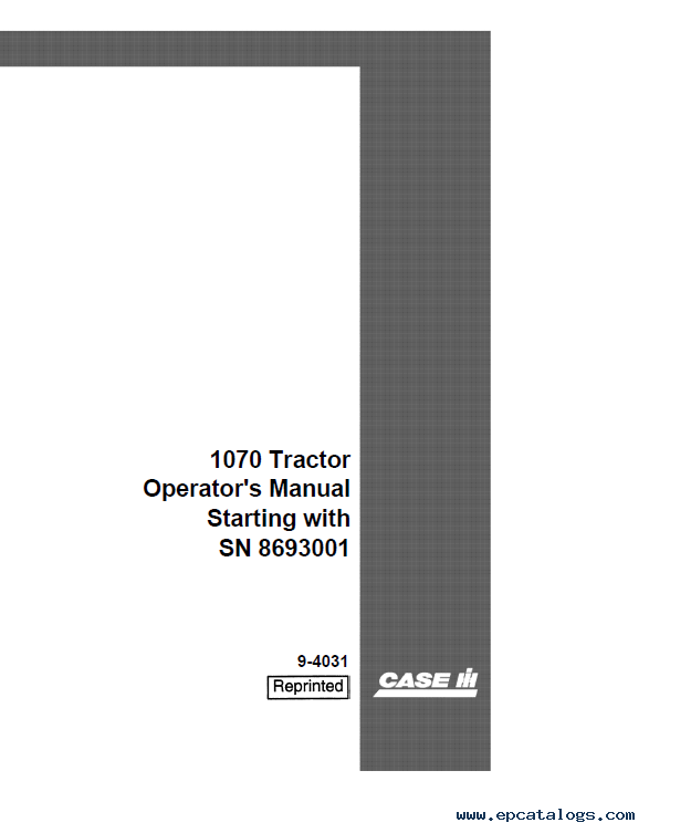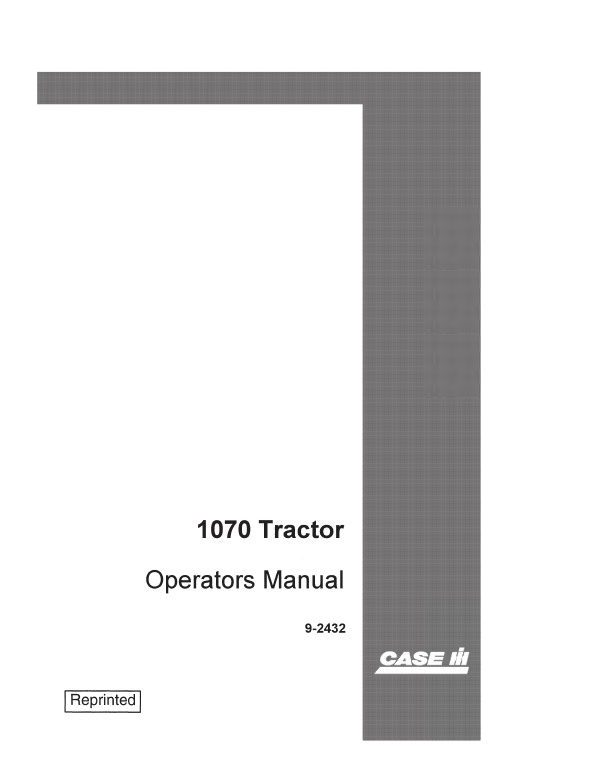 [1995]The operator guides will help you maintain and operate the Case tractors 1070 series. The operator's manuals will enable him to familiarize himself with the tractor, as each necessary move is illustrated and described. The operator does not need an in-depth knowledge of mechanical specifications, and this set of operator's manuals is enough. Fortified with this set of operator manuals, the operator can maintain the tractor Case, operate it efficiently and prolong its work