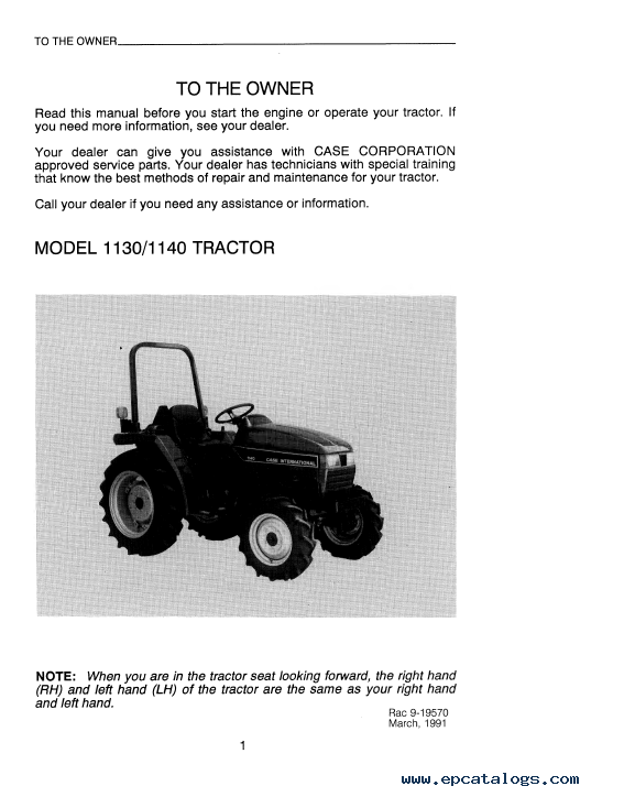 [1995]On Epcatalogs.com, you can familiarize the Operator's Manual in PDF format which includes operation and maintenance information, troubleshooting recommendations, and other material for the Case tractors 1130-1140 series.