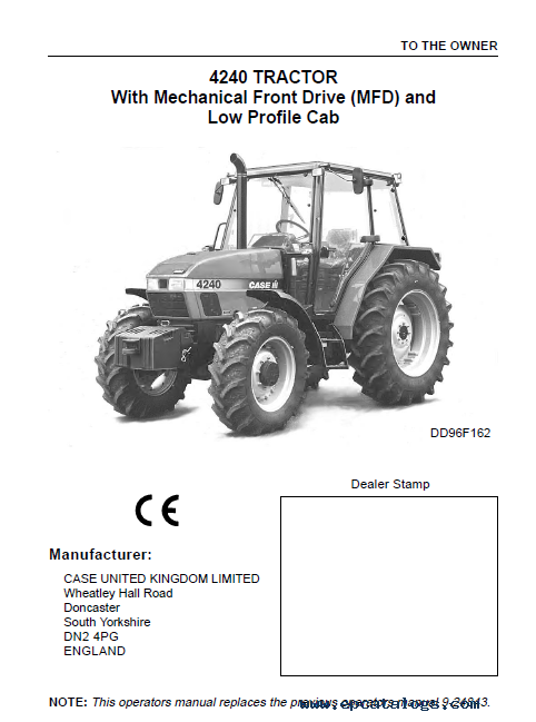 [1996]For better use, maintenance, and operation of the tractors Case operator's manual is enough for all this as each move necessary is illustrated and described. We recommend reading all information in this operator manual will enable you to familiarize yourself with the Case tractors, next series: