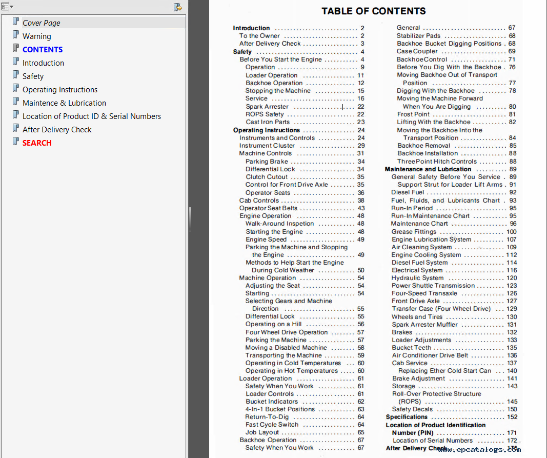 Screenshots for Case 580E & 580S Backhoe Loader Service & Operator’s Manuals & Parts Catalog PDF: