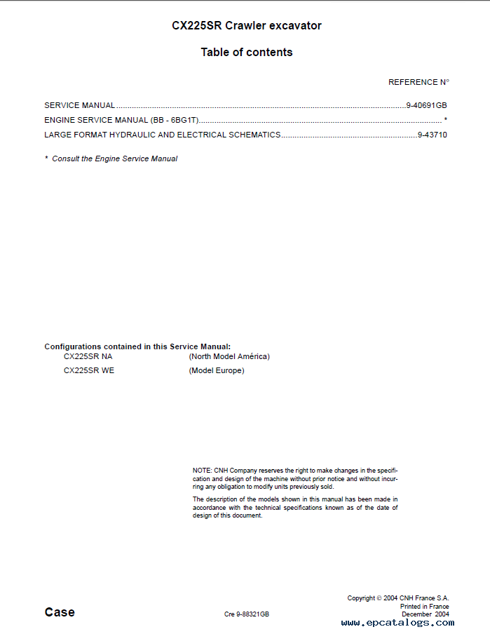 [12/2004]For proper operation, repair quality and timely maintenance of crawler excavators Case CX225SR, you should purchase this repair manual.