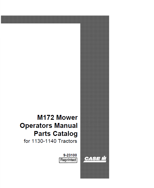 [1991]The operator manual includes information about mower M172 for tractor Case 1130 and 1140 series. There you will find the following information about specifications, safety rules, operation, owner service, maintenance, troubleshooting, and many other necessary details.