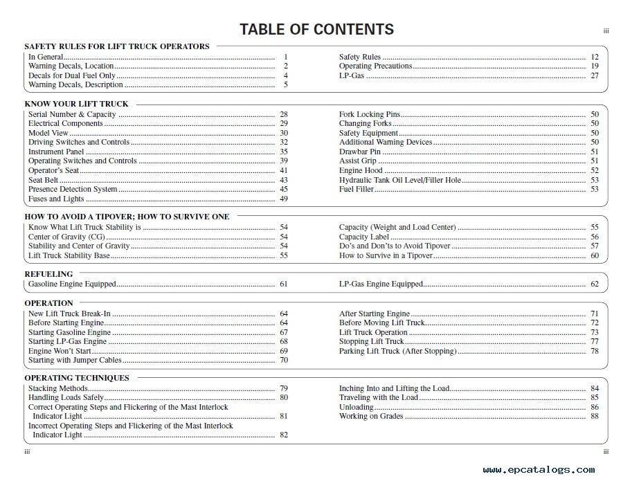 Screenshots for Cat Lift Trucks GP15/18/20/25/30/35NM, GP20CNM, GP25NM-HP FC/MC Operation & Maintenance Manual PDF: