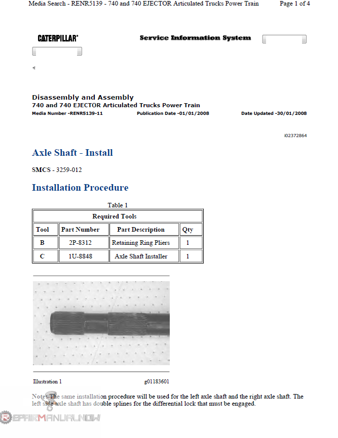 Screenshots for Caterpillar 740 Articulated Truck B1P Workshop Manual PDF: