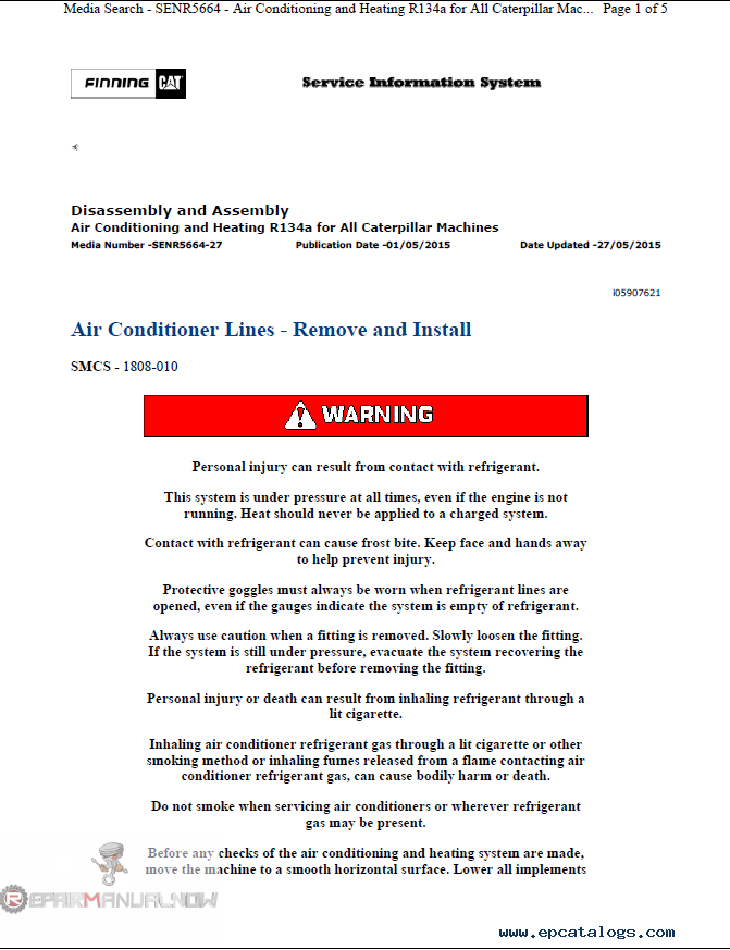The PDF manual includes repair instructions, installation procedures, system specifications, electrical and hydraulic schematics, component location references, safety rules, troubleshooting steps, and a wide range of technical illustrations.
