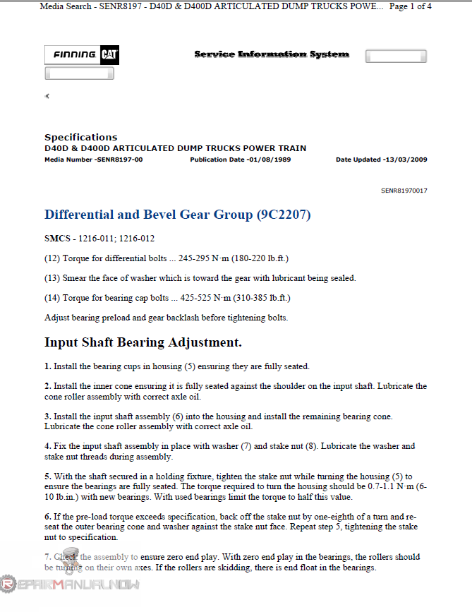 Screenshots for Caterpillar D400 Articulated Truck 1MD Workshop Manual PDF: