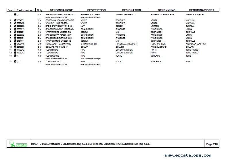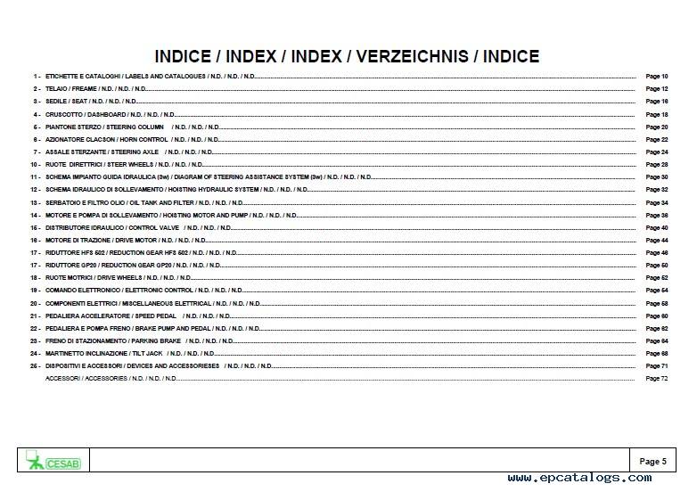 Screenshots for Cesab Forklifts Blitz 318 Spare Parts Catalog PDF: