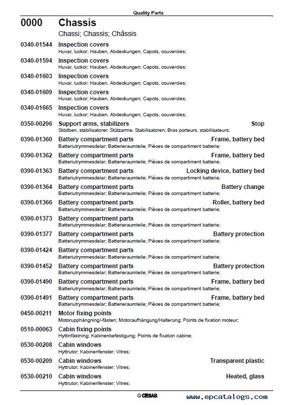 Screenshots for Cesab Reachtrucks R314CC, R316CC Quality Parts Manual PDF: