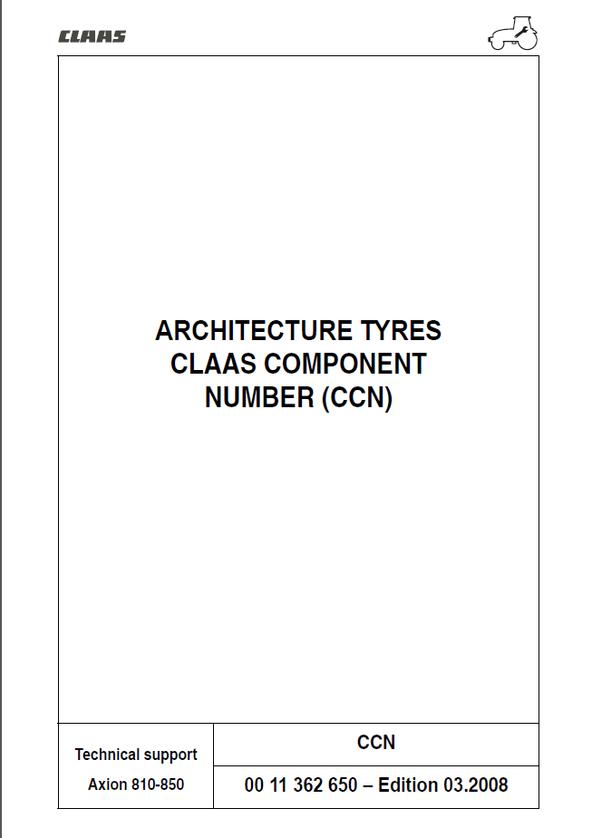 [02/2008]This manual contains repair and technical service manuals, special repair instructions, operating instructions, wiring electrical diagrams, technical and troubleshooting information for Claas Renault Axion tractors.