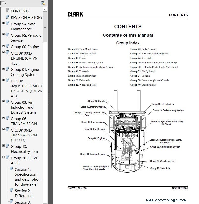 Screenshots for Clark C60-80D & C60-75L SM751 Service Manual PDF: