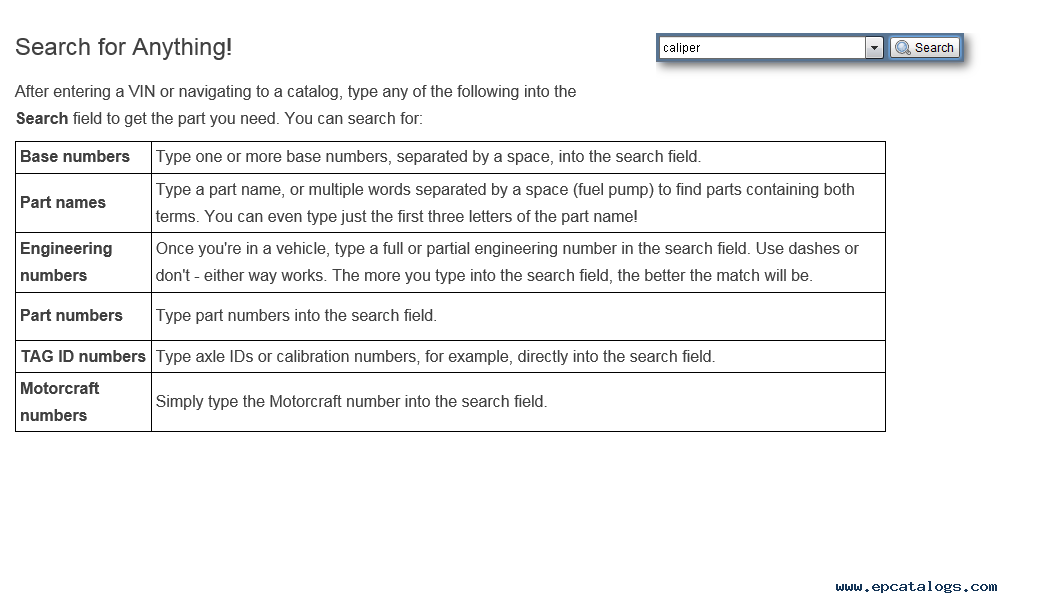 Ford invests serious engineering resources to improve parts data. In catalog introduce additional data indexing for flexible searching. To access a vehicle's BOM, simply enter its VIN.