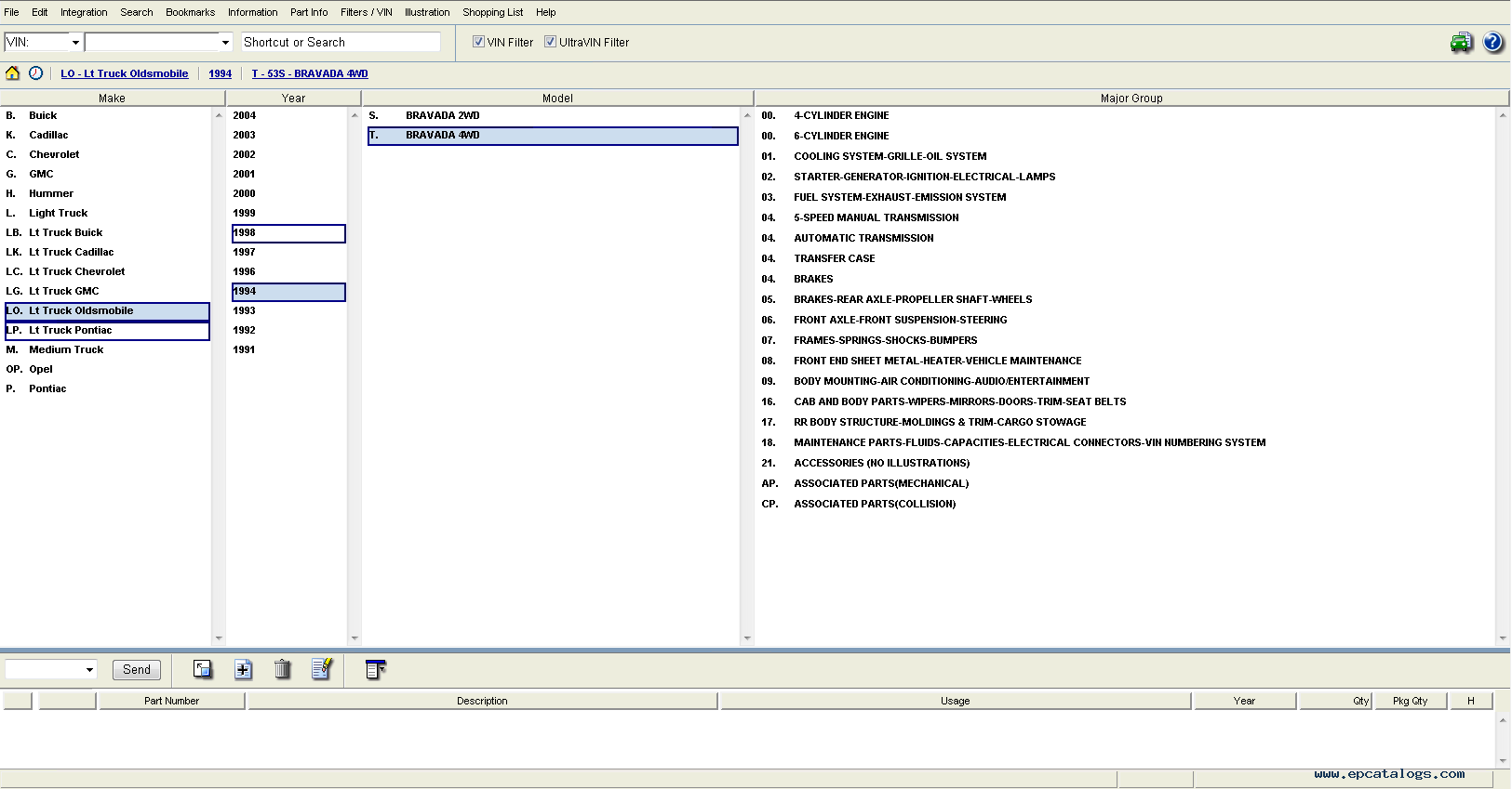 Parts catalog includes detailed parts information for following models Buick, Cadillac, Chevrolet, GMC, Hummer, Light Trucks, Lt Truck Buick, Lt Truck Cadillac, Lt Truck Chevrolet, Lt Truck GMC, Lt Truck Oldmobile, Lt Truck Pontiac, Medium Trucks, Opel, Pontiac.
