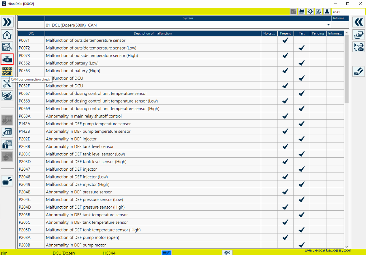 Screenshots for Hino Diagnostic Explorer 3 (Hino DX3 v1.25.6) 08/2025: