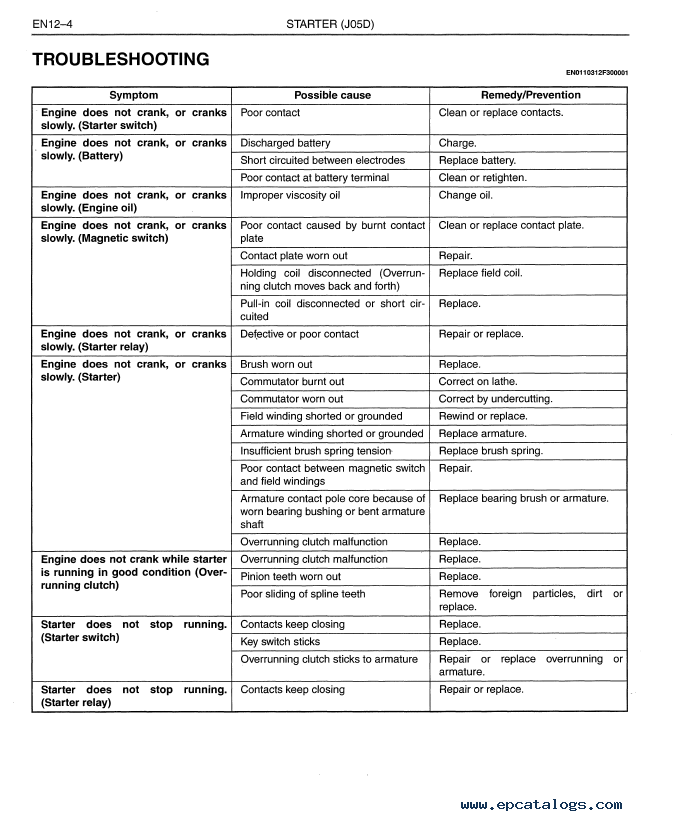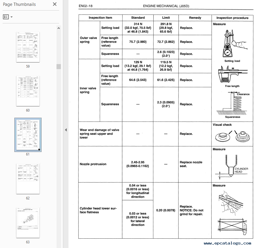 Screenshots for Hino Trucks J05D-TF Engine 2009 Workshop Manual PDF: