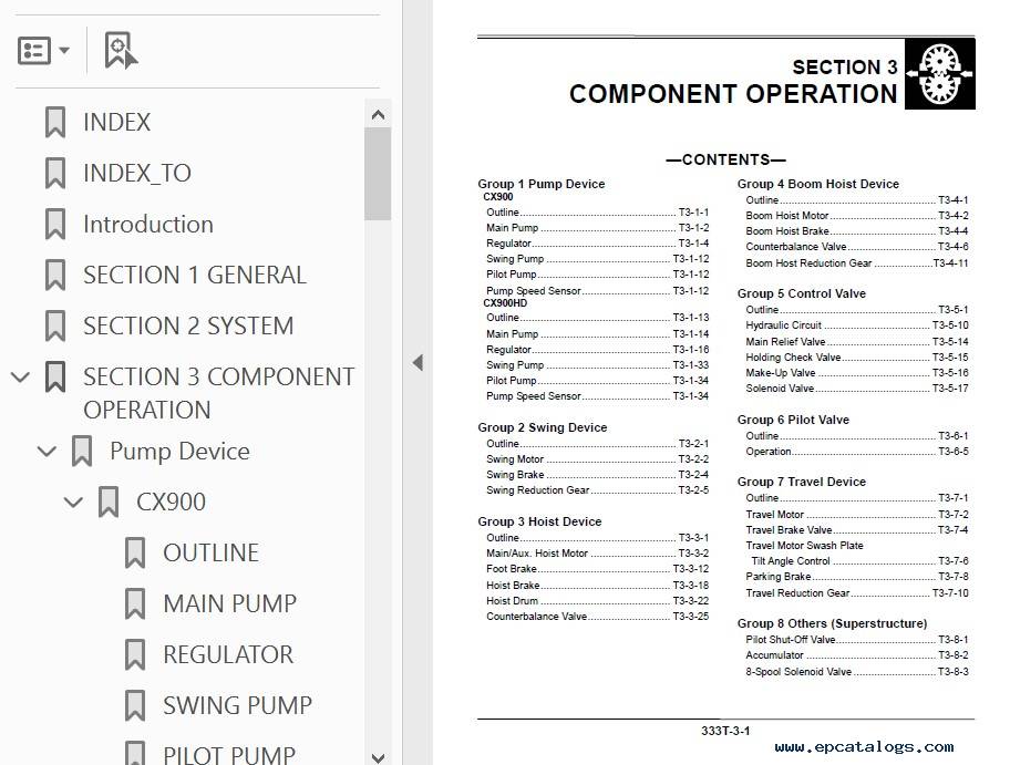 Screenshots for Hitachi Crawler Crane CX900/900HD Operational Principle Technical Manual PDF: