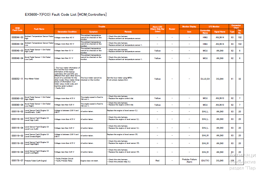 Screenshots for Hitachi EX5600-7(FCO) Fault Code List Manual PDF: