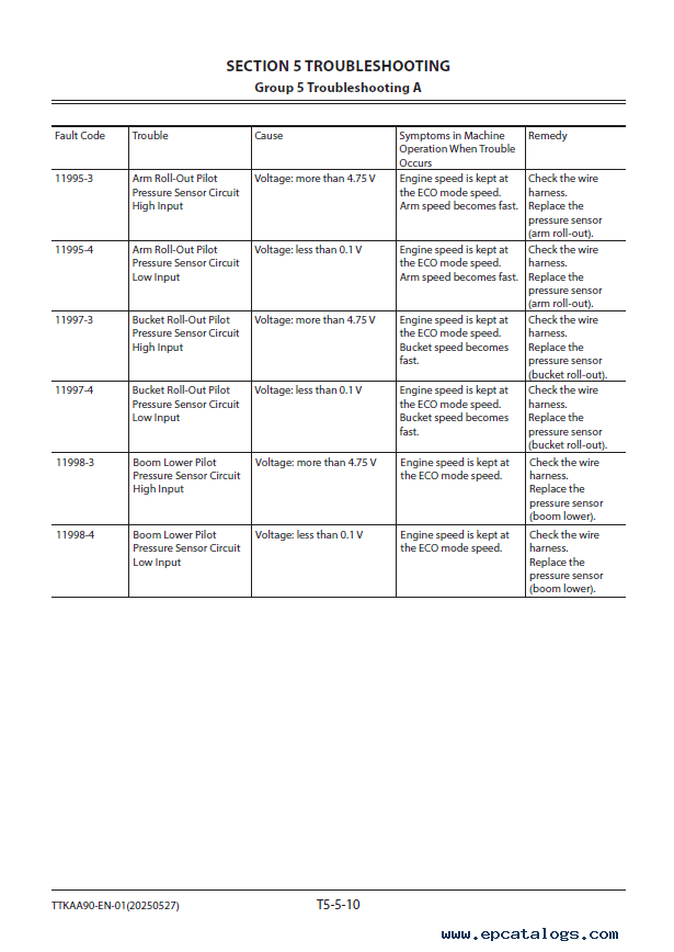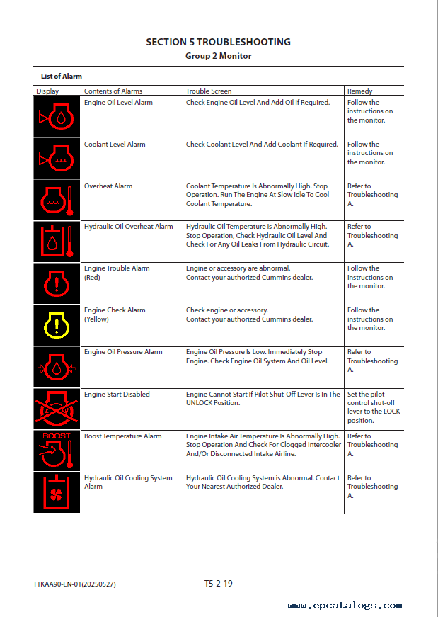 Screenshots for Hitachi Hydraulic Excavator FCO Cummins engine EX1200-7 Troubleshooting Technical Manual: