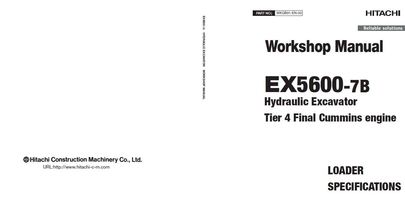 Hitachi Hydraulic Excavator Tier 4 Final Cummins engine EX5600-7B Workshop Manual PDF