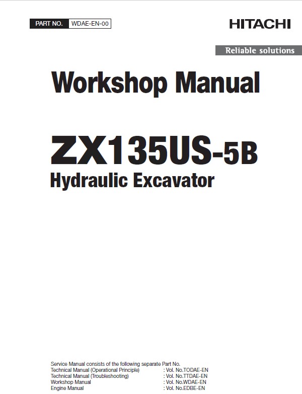 This PDF Workshop Manual was created for the current repair and routine maintenance of the Hitachi Hydraulic Excavator ZX 135US-5B Model.