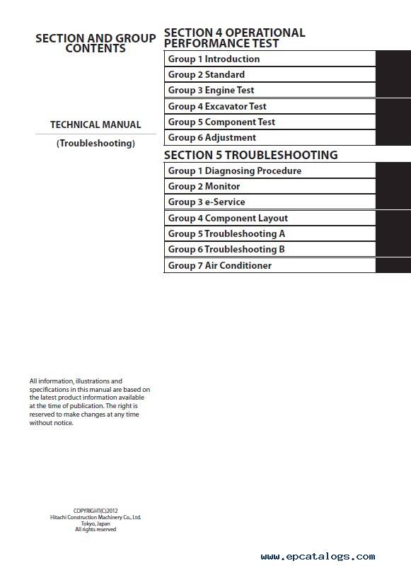 The pdf technical manual contains the necessary repair information on all issues that are important to know for the proper operation of the Hitachi hydraulic excavators.
