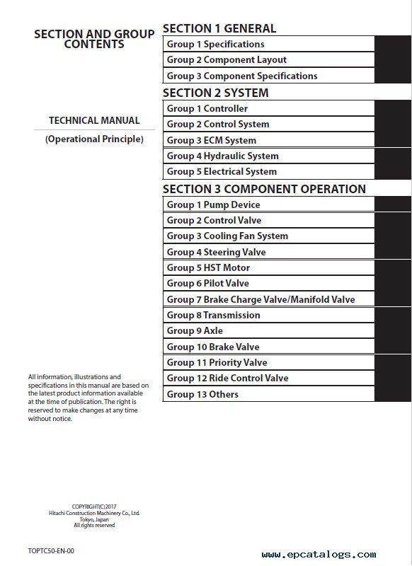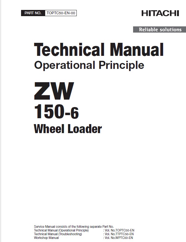 This PDF Technical Manual (Operational Principle) is intended for the current repair and routine maintenance of the Hitachi Wheel Loader ZW150-6.