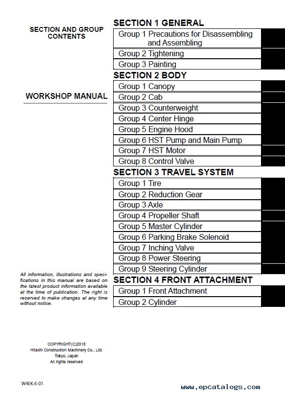 You can preview the workshop manual using the link at the top of the page 'Hitachi pdf manual instant preview'. You can also examine in detail screenshots and a list of content, which is presented below.