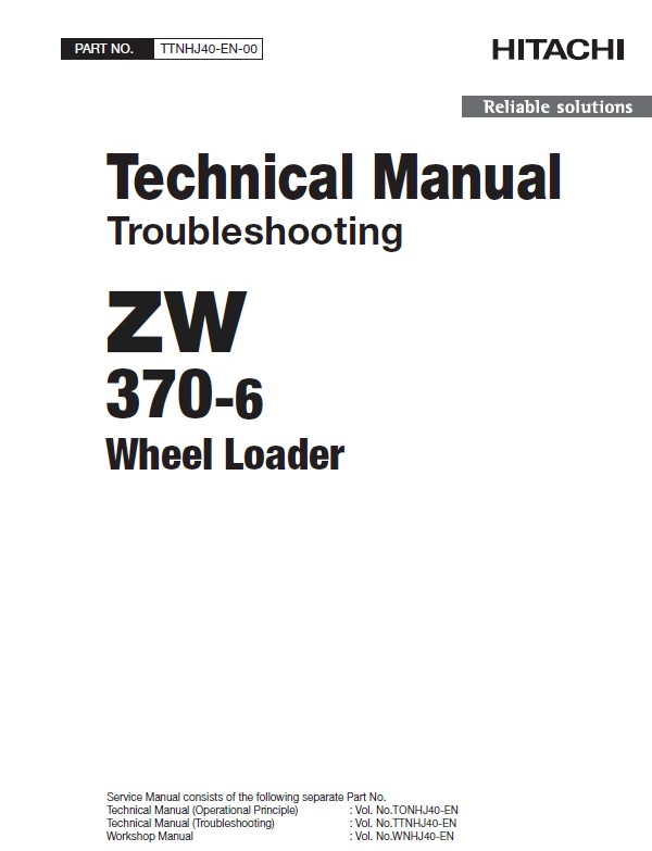 This PDF Technical Manual (Troubleshooting) contains the maximum amount of service information that should help owners/operators of Hitachi Wheel Loader ZW370-6.