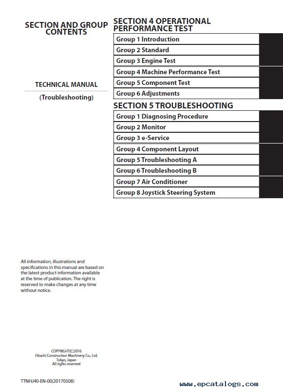 The technical service manual will help to identify and eliminate all possible malfunctions associated with the problems of all systems and components of the Hitachi wheel loader.