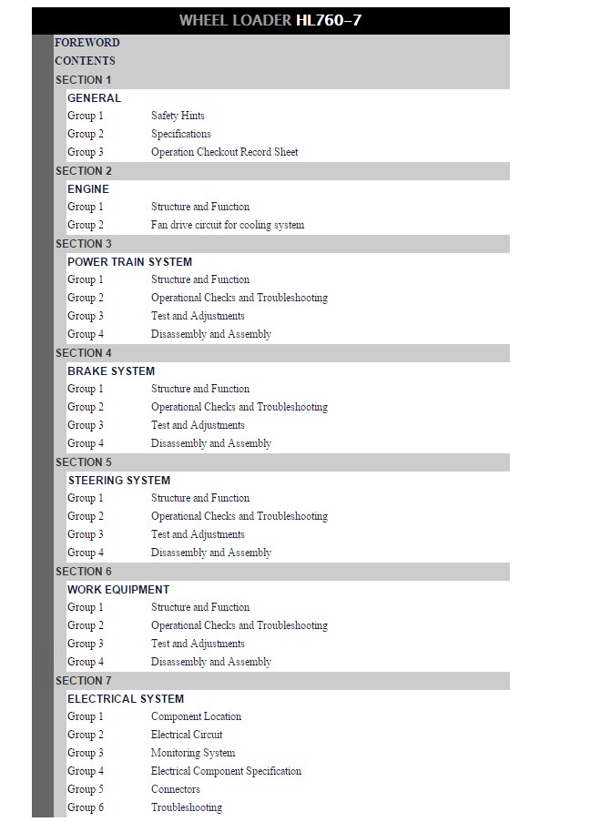 Screenshots for Hyundai Wheel Loader HL760-7 Service Manual PDF:
