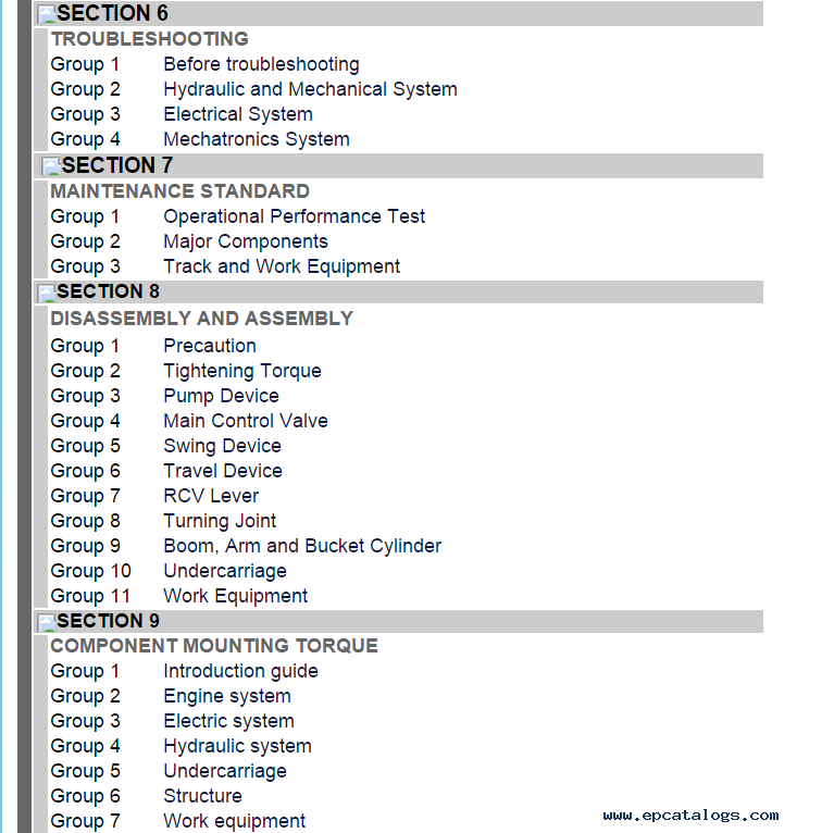 Screenshots for Hyundai Crawler Excavator R290LC-7A Service Manual PDF:
