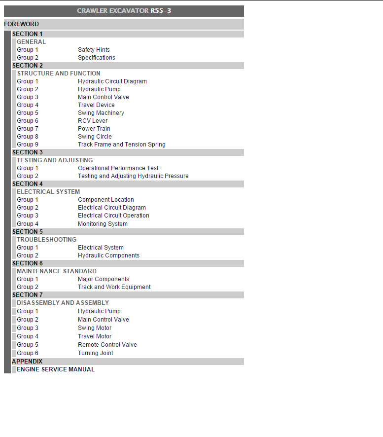 Screenshots for Hyundai Mini Excavator R55-3 Service Manual PDF: