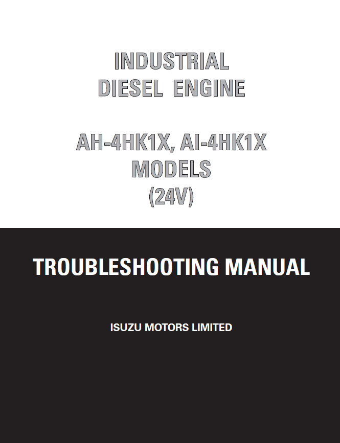 []The Troubleshooting Manual contains complete service information and repair instructions with different illustrations for maintaining and repairing the Isuzu Industrial Diesel Engine AH-4HK1X, AI-4HK1X(24V) models. It covers: