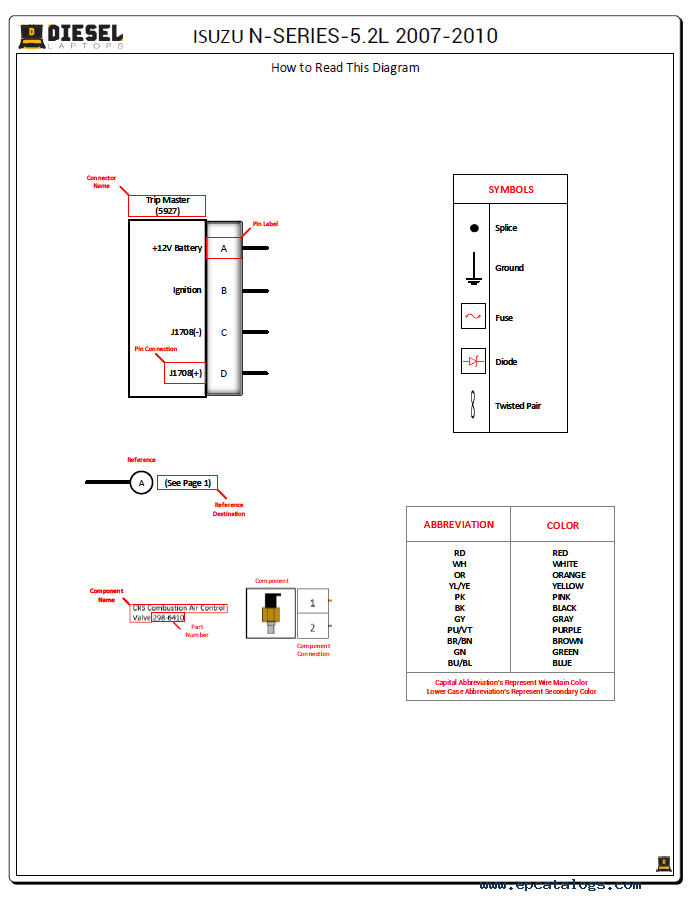 [2007 2010]The ECM Wire Diagram contains many illustrations, diagrams, and schemes with descriptions for correct use and maintenance of the Isuzu N Series 5.2 L (2007-2010) Model Truck. Also, you can see information about connectors, instructions How to Read This Diagram, symbols, notes, etc.