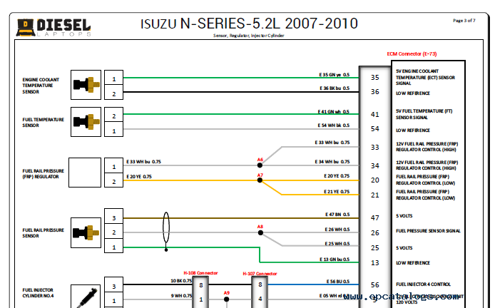 Screenshots for Isuzu N Series 5.2 L (2007-2010) Model Truck ECM Wire Diagram PDF:
