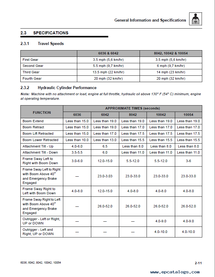 [2011]The Service Manual was specially written for the JLG SkyTrak Telehandlers 6036,6042,8042,10042 & 10054 models. All material will be helpful for the correct use, technical maintenance, troubleshooting, repair procedures when you work with this equipment. In this factory tutorial, you can read such information as safety practices, specifications, engine section, hydraulic and electrical systems, service recommendation, setting, technical data, different illustrations, many schemes, and diagrams.