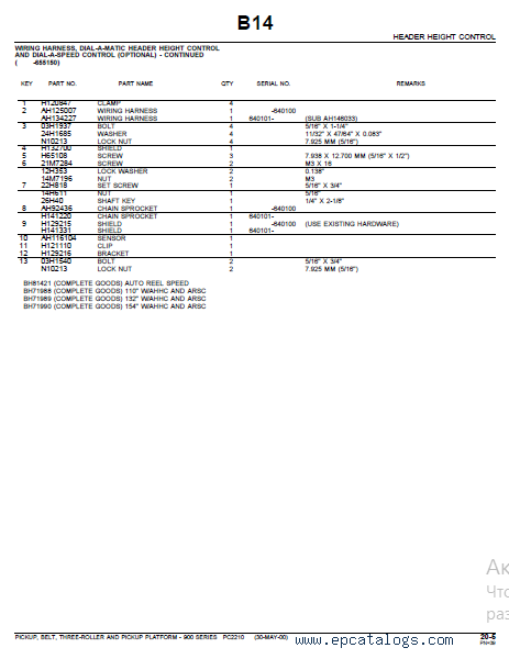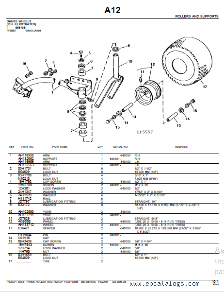[1999]This John Deere Spare Parts Catalog is intended for the service and replacement parts of the John Deere 132 Belt Pickup with Platform. With the help of this parts catalog, you can make timely and high-quality service maintenance and repair of the John Deere equipment. This electronic catalog includes pictures, electrical diagrams, parts lists, step-by-step recommendations, settings, technical data, and many others.