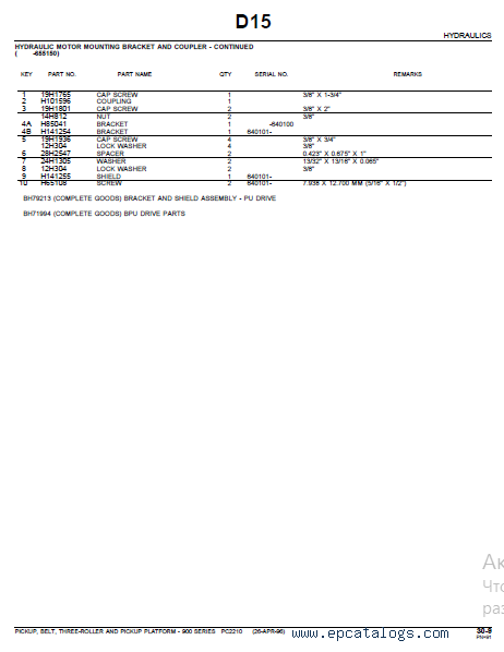 Screenshots for John Deere 132 Belt Pickup with Platform Parts Catalog: