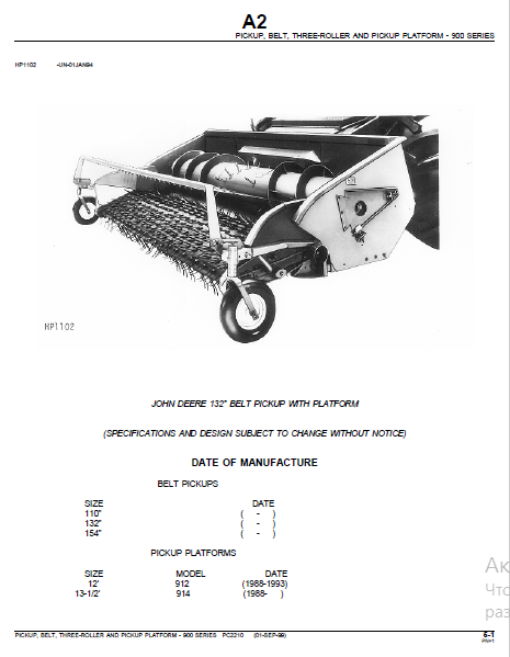 John Deere 132 Belt Pickup with Platform Parts Catalog