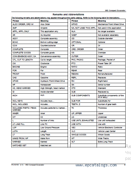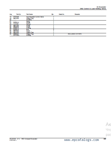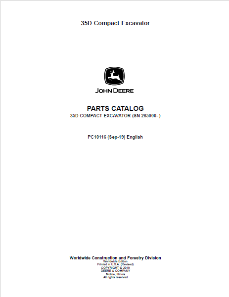 [2019]This Parts Catalog was written in PDF format with important information, step by step instructions, detailed descriptions, many illustrations and diagrams for John Deere 35D Excavator. The electronic manual contains technical data, troubleshooting, settings, engine section, system information, hydraulics, including detailed schemes, screenshots, diagrams, tables, and others.