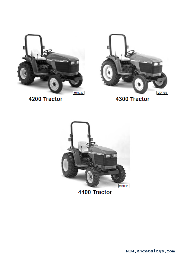 [04/2001]Technical manual includes full service information, complete repair manuals, fitting instructions, installation instructions, special troubleshooting instructions, technical service manuals for compact utility tractors John Deere 4200, 4300, 4400.