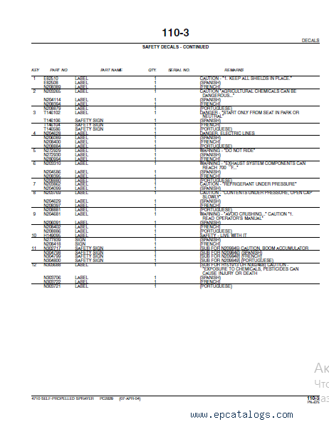 John Deere 4710 Self-Propelled Sprayer Parts Catalog PDF
