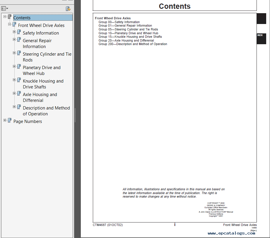 Screenshots for John Deere Front Wheel Drive Axles AS, MS Series CTM4687 Component Technical Manual PDF: