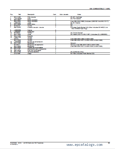 Screenshots for John Deere LA135 100 Series Tractors Parts Catalog PDF: