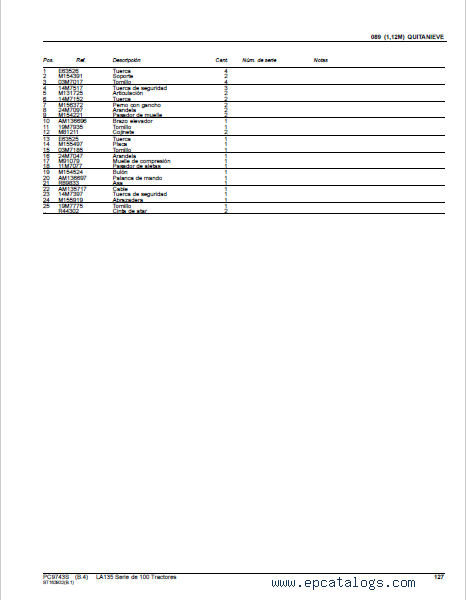 John Deere LA135 100 Series Tractors Parts Catalog PDF
